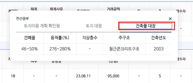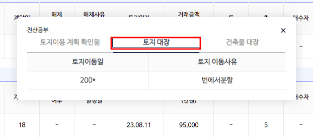 여기에서는 해당 아파트에 대한 토지이용계획 확인원과 토지대장, 건축물대장의 요약 내용을 확인할 수 있습니다.