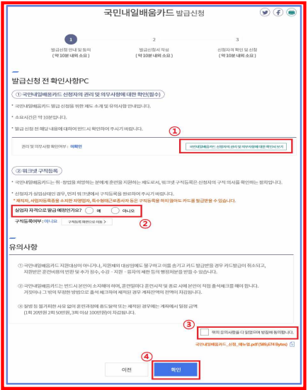 신청 이후 교육 동영상을 시청하시고 카드 발급 신청서를 작성하시면 신청이 완료됩니다. 만약 온라인 신청에 어려움이 있으시다면 신분증과 증빙서류를 확인하시고 거주지 근처의 고용센터를 방문하시면 신청이 가능합니다. 필요서류는 훈련마다 상이하므로 고용노동부 상담센터(1350) 에 문의하시기 바랍니다.