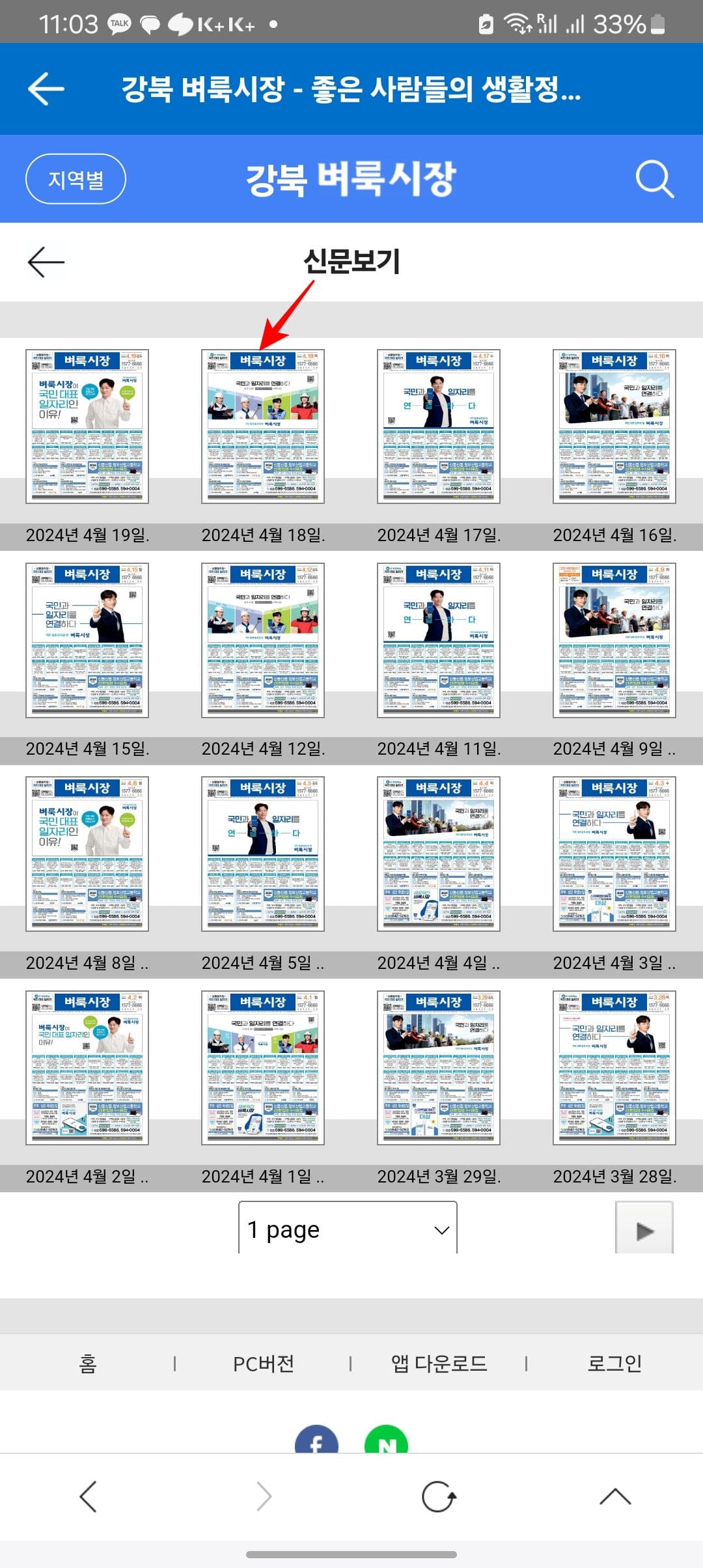 스마트폰에서 벼룩시장 종이신문그대로보기