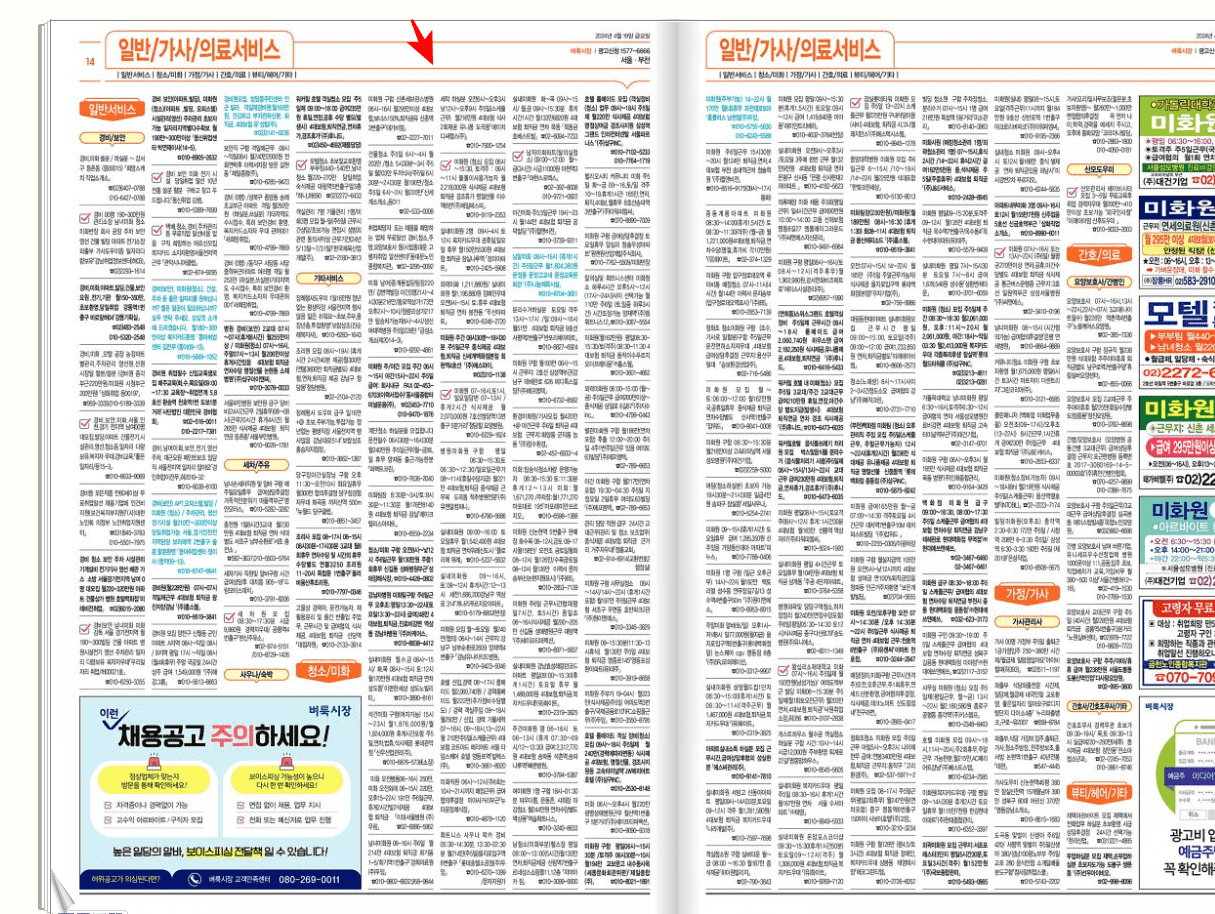 강북 벼룩시장 최신호를 확인할 수 있습니다. 표시된 신문보기 버튼을 클릭합니다. 새창이 열리고 벼룩시장 종이신문이 표시되면 우측 상단의 [책갈피] 버튼을 클릭합니다. 책갈피에서 Index 메뉴를 선택하면 벼룩시장의 목차를 한눈에 확인할 수 있습니다. 구인구직 > 일반/가사/의료서비스를 선택해 봅니다.