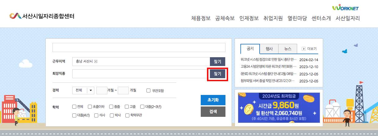 서산시청 홈페이지 안내 (구인구직 및 복지)