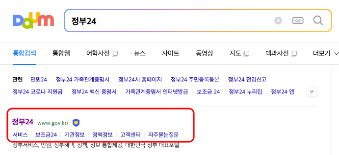 운전경력증명서 인터넷발급을 하려면 먼저 정부 24 홈페이지에 방문해야 합니다. 여기서는 다음 포털 검색을 통해 바로 이동해 보도록 하겠습니다.