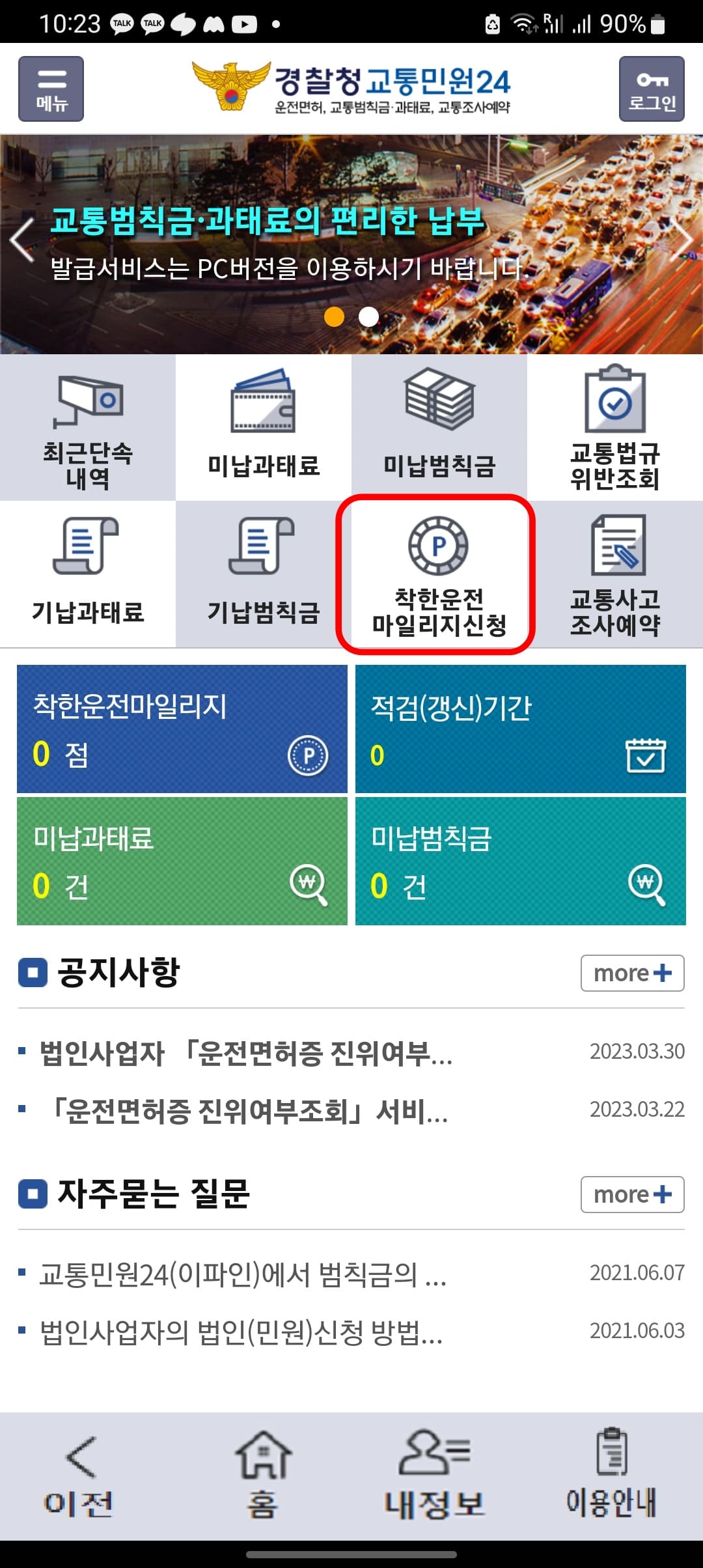 모바일 착한운전 마일리지 인터넷신청 방법