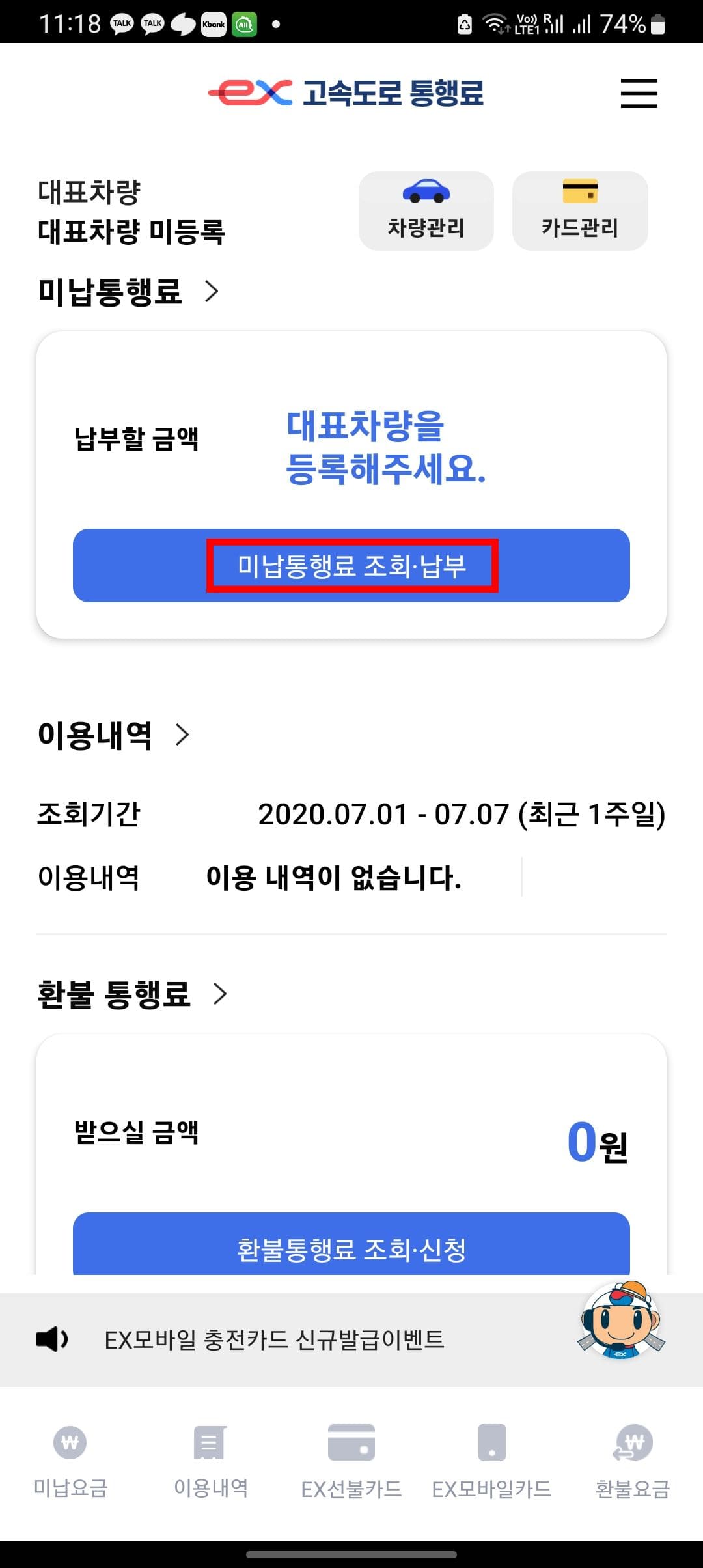 하지만 선불카드에 잔액이 부족하거나, 단말기 정보가 입력되지 않은 경우 미납요금이 발생할 수 있습니다. 미납통행료가 지정된 기간 내에 납부되지 않으면 10배의 과태료가 부과되기 때문에 정기적으로 미납요금을 조회하는 것이 좋습니다.
