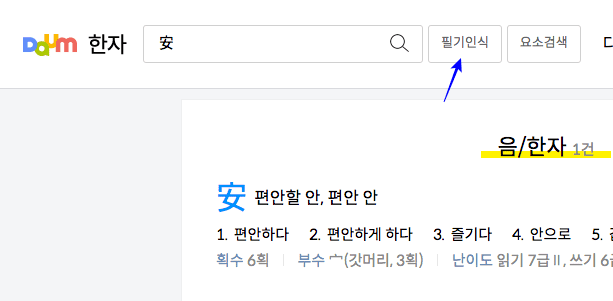PC와 모바일에서 한자사전 필기인식을 이용하는 방법은 아래를 확인하시기 바랍니다.