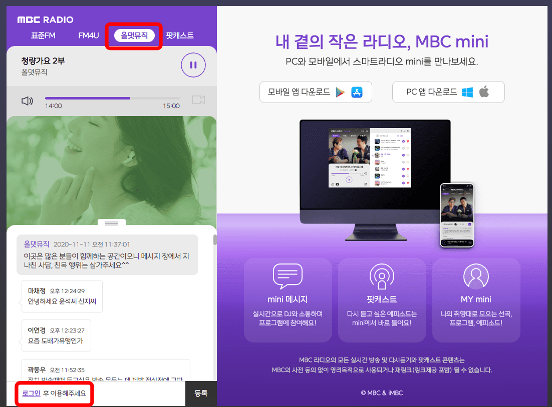 언제 어디서나 MBC 스마트라디오 mini를 즐기세요.