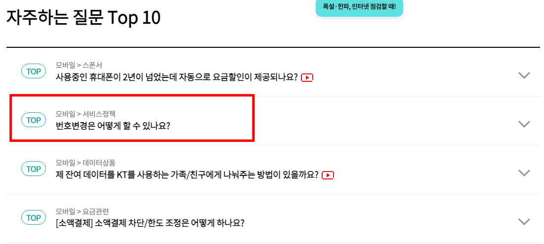 사람들이 많이 하는 질문은 자주하는 질문에서 바로 확인이 가능합니다. 자주하는 질문 메뉴로 이동하신 후 원하는 질문을 클릭하면 위의 사진처럼 바로 안내받을 수 있습니다.